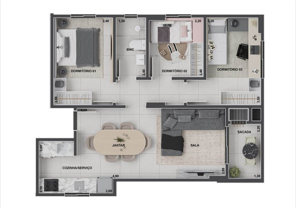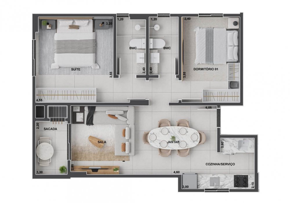 - Área Privativa: 60,40 m²