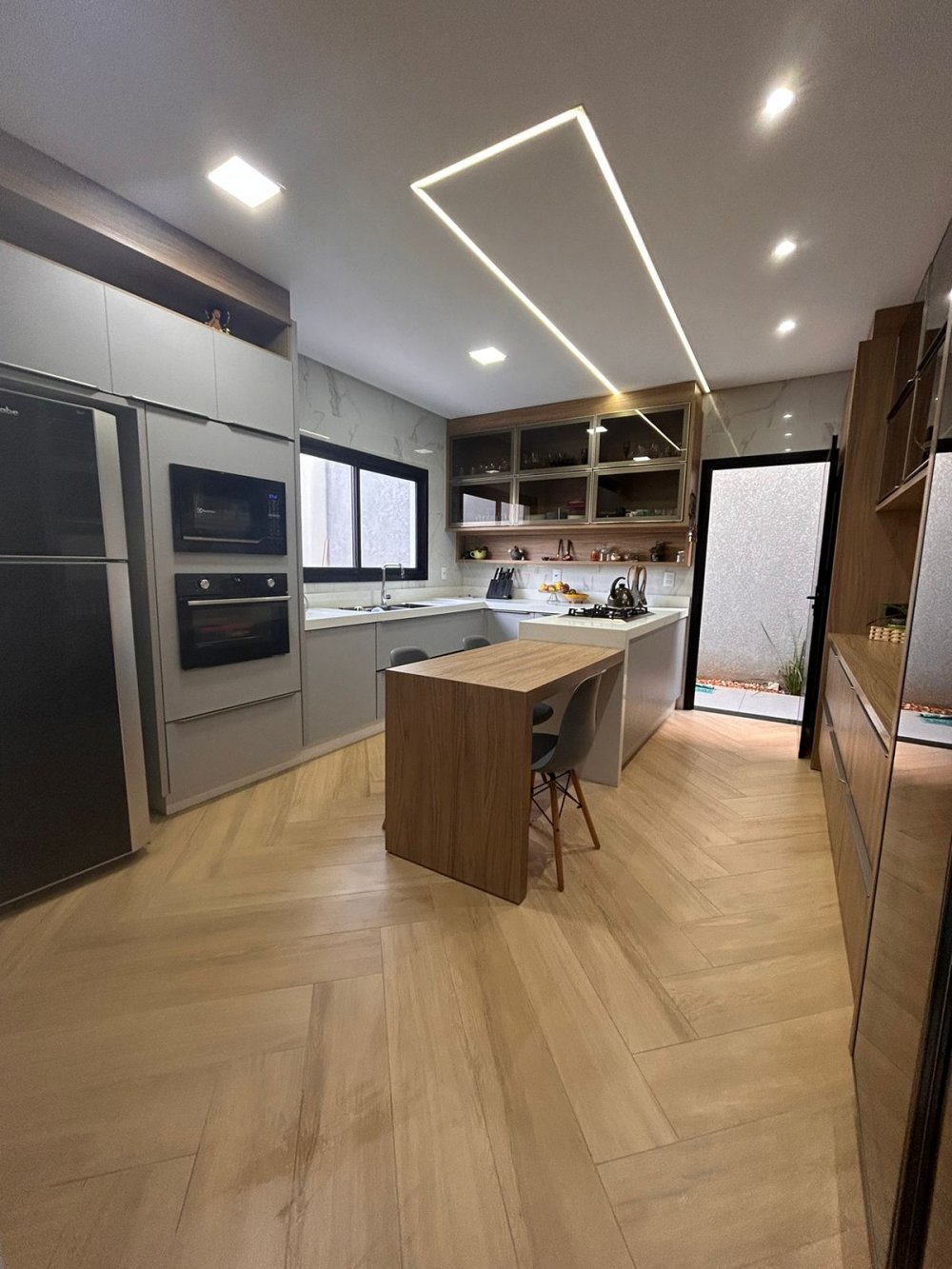 Sala de estar e jantar integradas;
