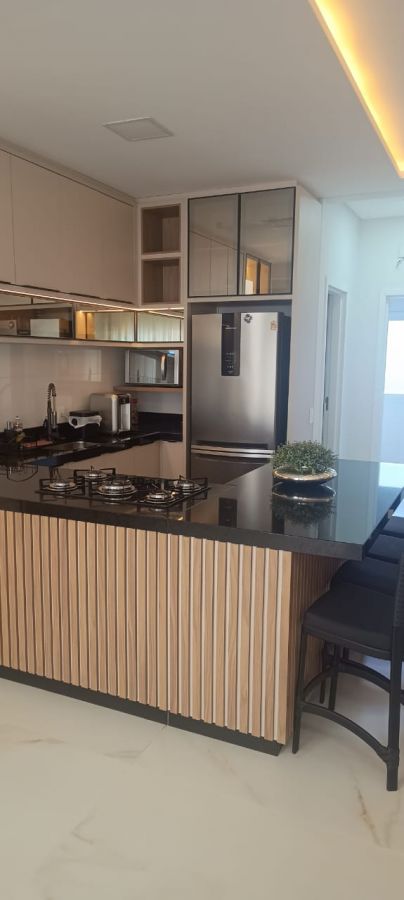 Cozinha (com móveis planejados, geladeira, cooktop, forno elétrico);