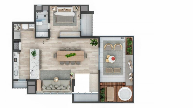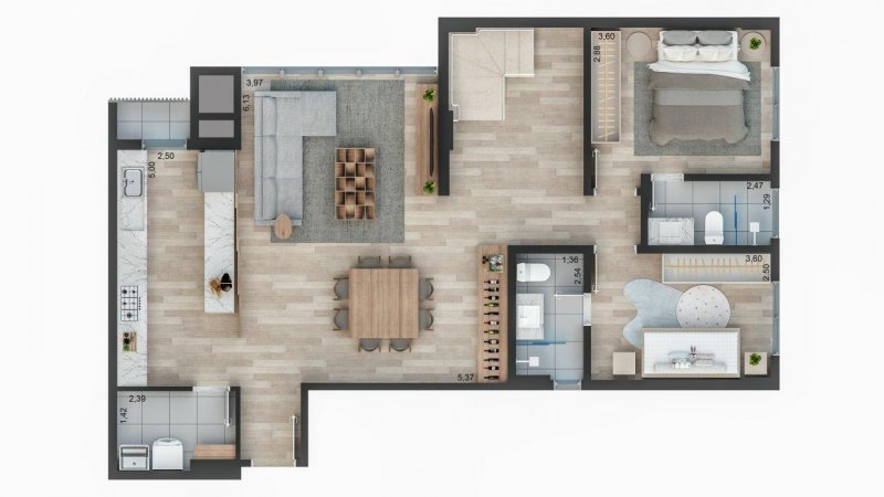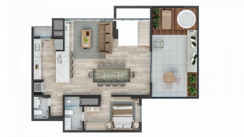 - Lofts com 1 ou 2 quartos com 127m² de área privativa.